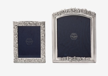 Lote compuesto por 2 marcos en plata con decoración de flores, hojas y lazo alrededor. Estilo Luis XVI. Marcas del platero Pedro Durán.