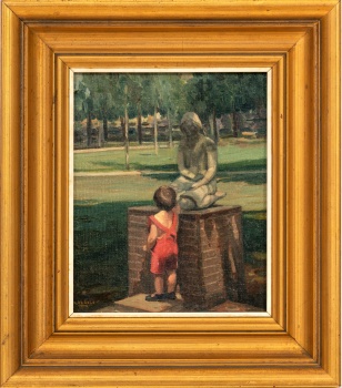(Las Arenas, Vizcaya 1928) "Parque con niño y escultura" Firmado: A. Azaola Óleo / Tablex 25,5 x 21 cm.; 35 x 41 cm. (con marco)
