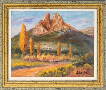 (Sabadell 1929-2014) "Pedraforca. Málaga" Firmado: Soler Gil Óleo / Lienzo 28 x 36 cm.; 36 x 44 cm. (con marco) Al dorso titulado