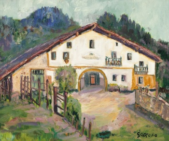 (S. XX) "Caserío Calartza - Erdiroa" Firmado: Gorroño Óleo / Lienzo 46 x 55 cm.