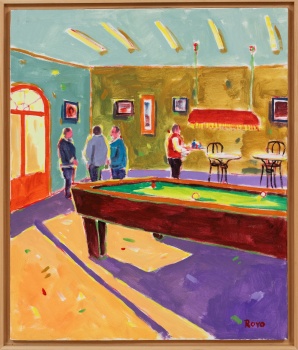 (Valencia 1940) "Personajes en el interior del bar" Firmado: Royo Acrílico / Lienzo 73 x 60 cm.; 77,5 x 64,5 cm. (con marco)