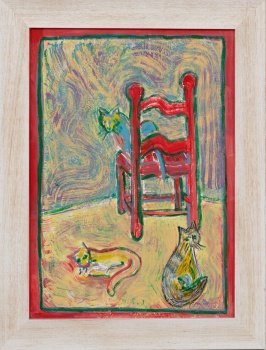 (Galicia S. XX) "Gatos en la silla" Firmado: Cesareo Acrílico / Lienzo pegado a tabla 65 x 46 cm.; 78 x 59 cm. (con marco)