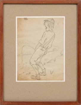 (S. XX) "Pillo en el río" Firmado: Aróstegui Dibujo / Papel 28 x 21 cm.; 46 x 36 cm. (con marco)