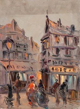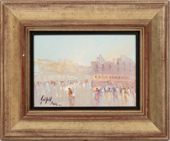 (Barcelona 1935) "Personajes en París" Firmado: Grifell París 82 Óleo / Táblex 16 x 21,5 cm.; 25,5 x 31 cm. (con marco)