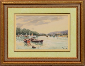 (S. XX) "Barcas atracadas" Firmado: Arrizabalaga 95 Acuarela / Papel 34 x 48 cm.; 62,5 x 79 cm. (con marco)
