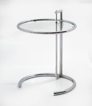 Descarga el catálogoVelador regulable en acero cromado y encimera en cristal.
