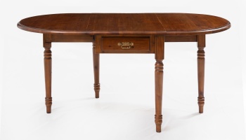 Mesa de comedor con alas en madera de caoba y cajón lateral. Estilo Regencia.