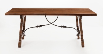Mesa tocinera en madera de caoba con fiadores en hierro forjado. Estilo Luis XVI.