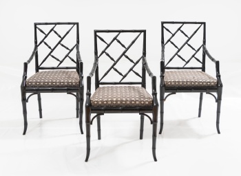 Conjunto de 3 butacas de comedor en madera lacada en negro imitando bambú. Estilo Chippendale.