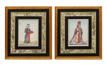 (S. XX) "Personajes orientales (pareja)" Litografía / Papel 51,5 x 44 cm. (cada una)