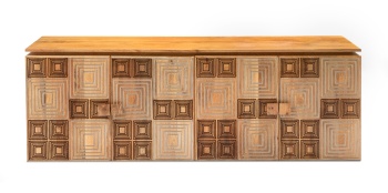 Descarga el catálogoAparador en madera de mango con decoración geométrica de puertas y baldas interiores.