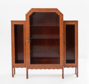 Vitrina en madera de roble con puertas en cristal biselado y baldas interiores. Estilo Art Decó.