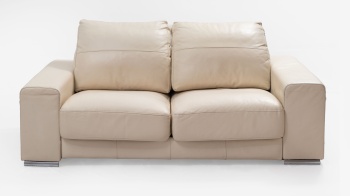 Sofá de 2 plazas en piel blanca deslizante y patas en acero cromado. Gamamobel.