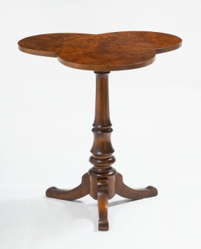 Mesa velador en madera de raíz representando trébol. Estilo Regencia.