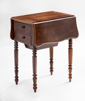 Mesa - costurero de alas en madera de caoba tallada con 2 cajones. Estilo Luis XVI.