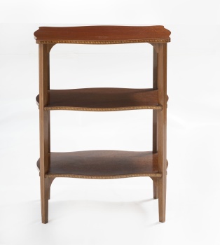 Mueble de 3 baldas en madera de caoba y marquetería con decoración geométrica. Estilo Eduardino.