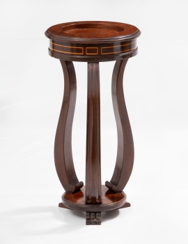 Peana en madera de caoba tallada y marquetería. Estilo Regencia.