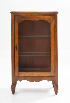 Vitrina en madera de caoba tallada e interior con 2 baldas de cristal. Estilo Regencia.