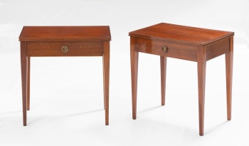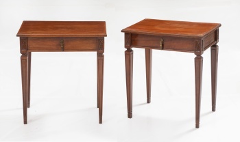 Pareja de mesillas en madera de caoba con cajón central. Estilo Luis XVI.
