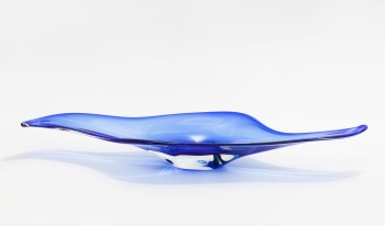 Centro de mesa en cristal de Murano representando hoja en color azul.