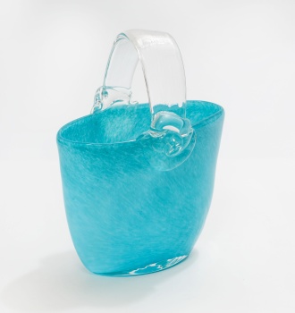 Cesta en cristal de Murano con decoración de flores en color azul.