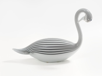 Figura en cristal de Murano representando cisne en color blanco y negro.