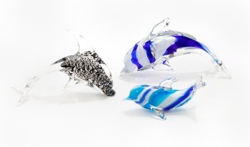 Lote compuesto por 3 figuras en cristal de Murano representando Delfines en color blanco, azul y gris.