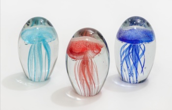 Lote compuesto por 3 pisapapeles en cristal de Murano representando Medusas en color azul, rojo y añil.