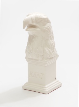 Figura en porcelana blanca representando busto de águila. Anagramada.