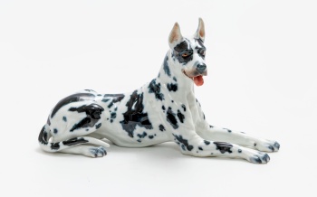 Figura en porcelana policromada representando "Perro Gran Danés". Sello en la base. Manufactura Bidasoa.
