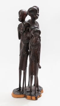 Escultura en madera de ébano tallada representando "Familia africana".