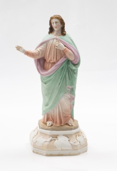 Figura en biscuit policromado representando "San Juan" base con decoración de hojas de parra.
