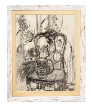 (Les Ormes, Francia 1928 - Saint Cloud 2003) "Bodegón de silla y jarra" Firmado: C. Dechezelle Carboncillo / Papel 60 x 49 cm. ; 74,5 x 61,5 cm. (con marco) Exposición en la Galería Bernier 1969. París