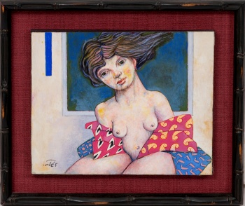 (Madrid 1947) "Odalisca" Firmado: Ortés Técnica mixta / Papel pegado a lienzo 14,5 x 18 cm. ; 21 x 24 cm. (con marco)