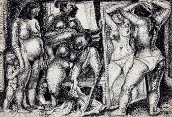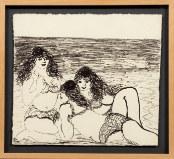 (Madrid 1930 - 2000) "Mujeres" Firmado: Waldo 1974 Tinta / Cartulina 34 x 50 cm.