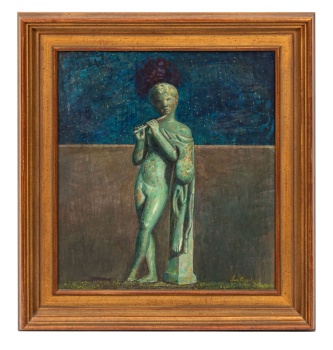 (Basauri, Vizcaya 1955) "Músico" Firmado: Luis Miguel 83 Óleo / Papel pegado a táblex 43 x 38 cm. ; 56 x 51 cm. (con marco)