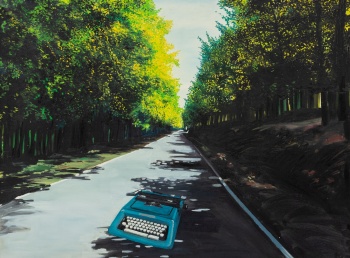 (Bilbao, 1956) "Paisaje con carretera y máquina de escribir" Óleo / Lienzo 97 x 130 cm. ; 106 x 139 cm. (con marco)