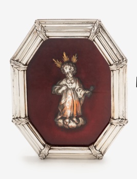 Relicario en plata con "Niño Jesús " en su interior en metal plateado.