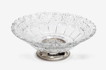 Centro en cristal de Bohemia tallado con decoración vegetal y geométrica. Base de plata. Marcas de platero. Estilo Regencia.