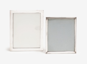 Lote compuesto por 2 portarretratos en metal plateado y alpaca con decoración vegetal. Estilo Regencia.