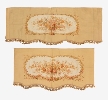 Conjunto de 2 bandos en tapiz bordado con decoración de bouquets de flores en tonos beiges, rosas, verdes, etc.