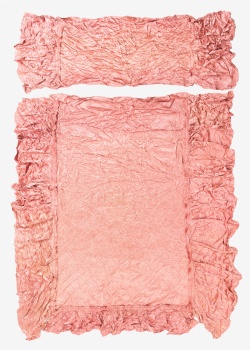 Colcha y funda para almohadón antiguo en seda color rosa.