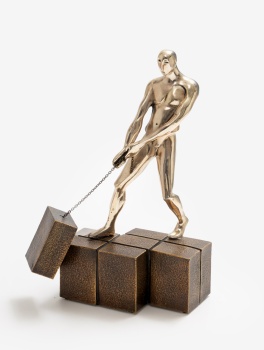 (S. XX) "Arrastre" Metal plateado y dorado 36 x 23 x 14,5 cm.