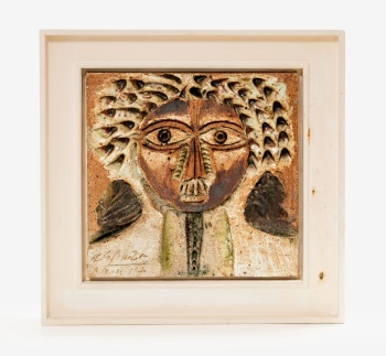 (Lima, Perú 1926 - Sevilla 2020) "Rostro" Firmado: Espinoza. 1970 Cerámica vidriada / Marco en madera 30 x 30 cm.; 42,5 x 42,5 cm. (con marco)