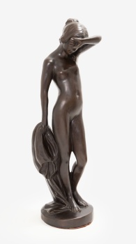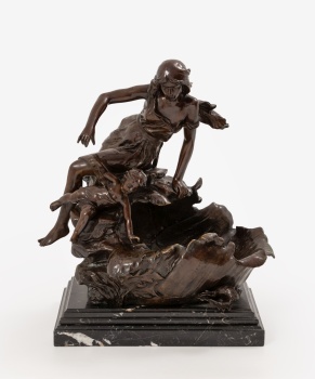 (1849-1927) "Odalisca con niño y concha" Firmado: E. Carlier Bronce patinado / Base de mármol 58 x 51 x 31 cm. (con base); 50 x 51x 31 cm. (sin base)