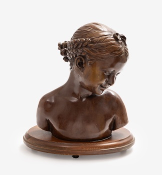 (Pp. S. XX) "Niña con trenzas" Bronce patinado / Base en madera 31x 27 x 16 cm.; 37 x 33 x 22 cm. (con base)