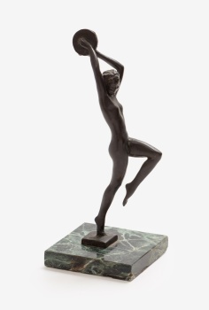 (1894-1995) "Joven con pandereta" Firmado: Guerbe Bronce patinado / Base de mármol 25 x 9,5 x 9,5 cm.