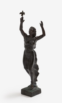 (Fontecha, Álava 1905 - Burgos 1969) "Joven con paloma" Firmado: J. Lucarini Bronce patinado 53,5 x 16 x 14 cm.