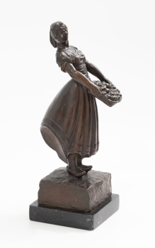 (S. XX) "Joven con cesta de frutas" Firmado: A. Buendia Bronce patinado / Base de mármol 38 x 16 x 14 cm.