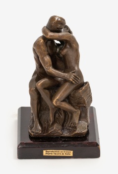 (S. XX) "El beso" Bronce patinado / Base en madera 14 x 9 x 9 cm.